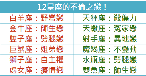十二星座會經歷怎樣的不倫之戀 十二星座